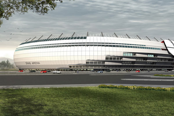 Sivas'ta Mayıs 2013'te temeli atılan, kendi enerjisinin bir bölümünü üretecek, yağmur ve kar sularını depolayacak, ısıtma sistemli ve 25 bin seyirci kapasiteli Türkiye'nin ilk ekolojik stadında çimlerin serimine başlandı.
