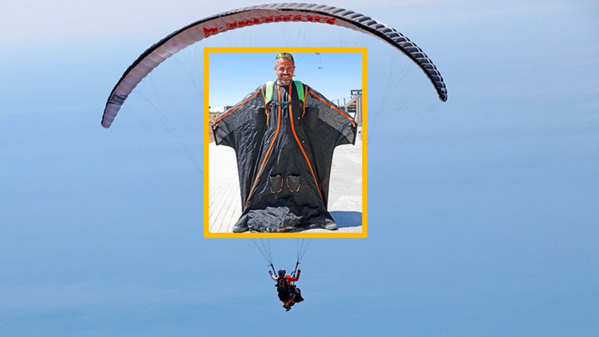 Muğla'nın Fethiye ilçesindeki 1965 rakımlı Babadağ'da kurulu teleferik tesislerinin genel müdürü Cengiz Koçak, mesai bitiminde evine görev yaptığı zirveden Ölüdeniz manzarası eşliğinde wingsuit ile süzülerek gitmesiyle ilgi çekiyor.